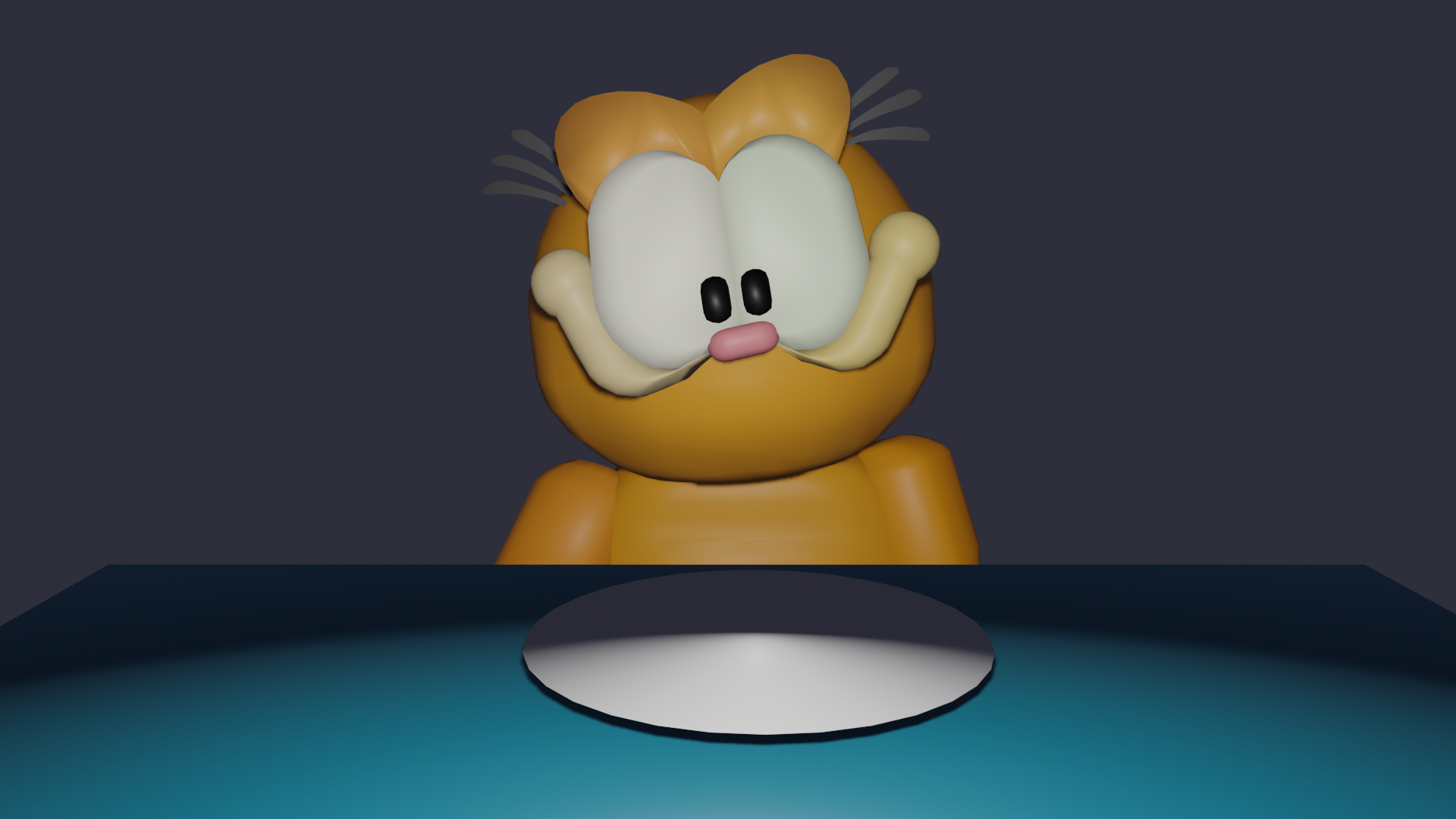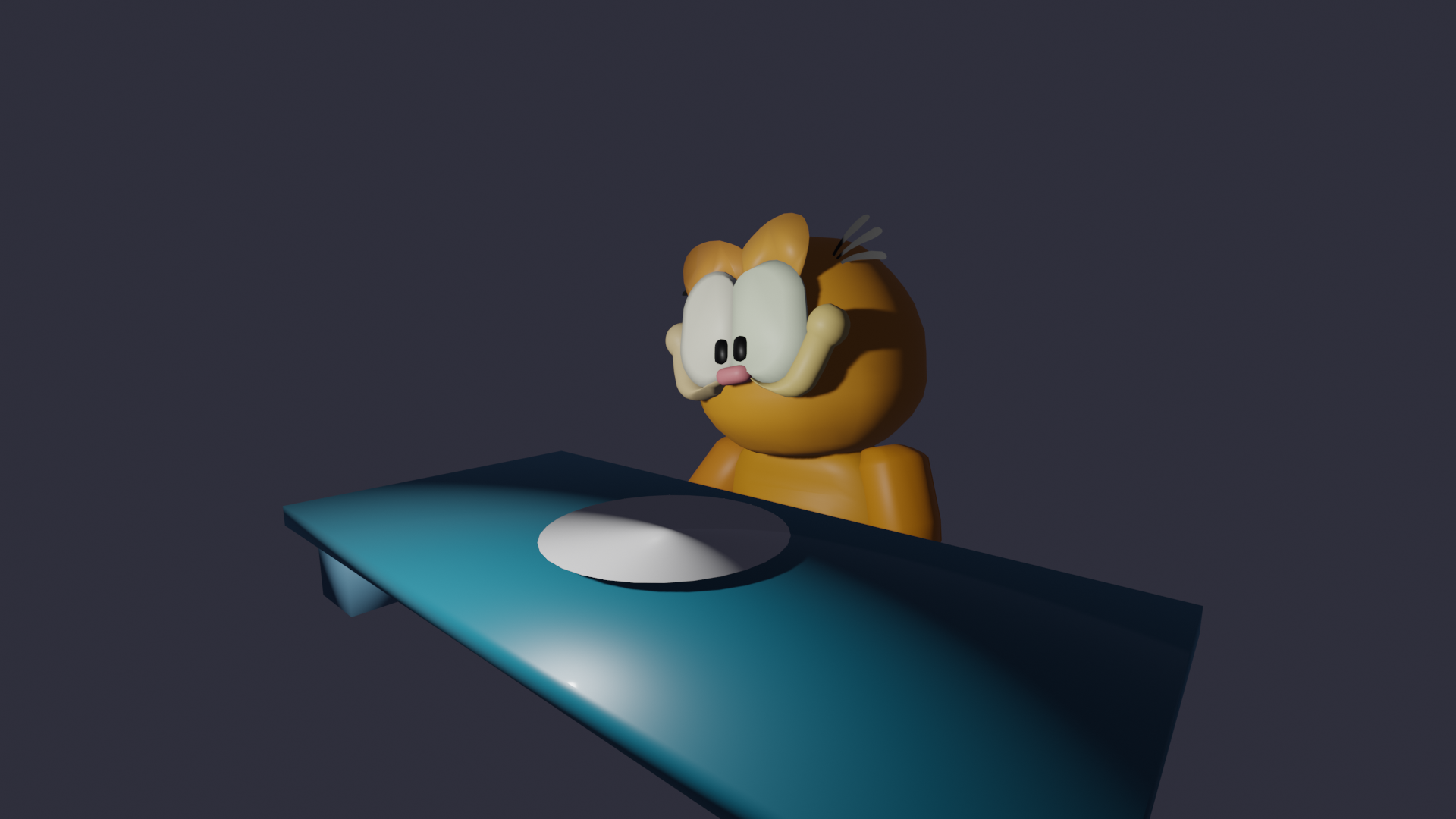 Garfield from the cartoon/comic 'Garfield'. This is my first finished project in Blender after the iconic Donut tutorial.